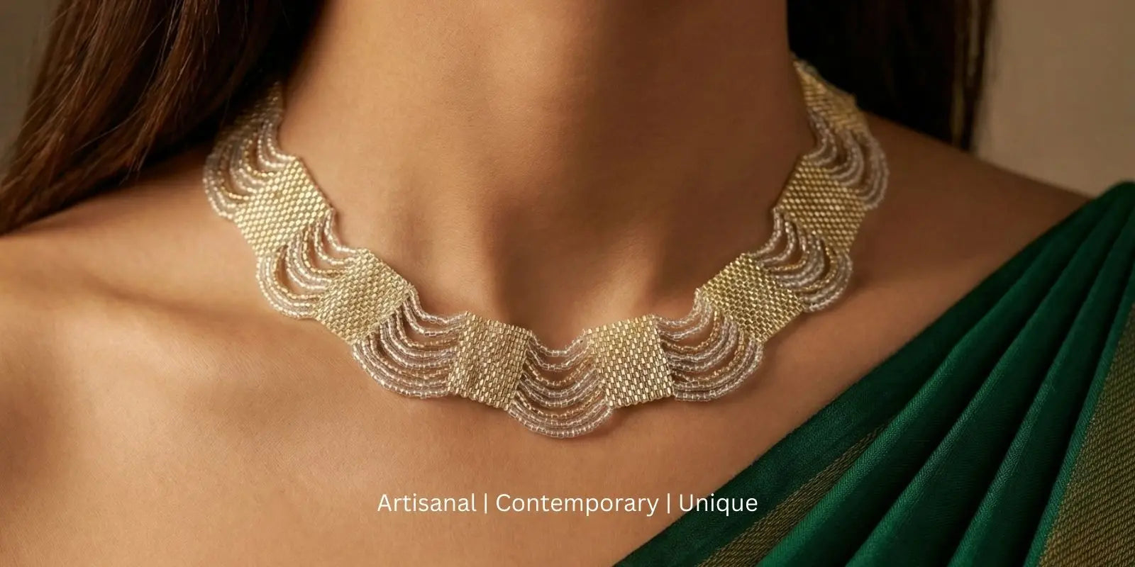 Explore artisanal beaded necklaces by Risham. Unique designs perfect for layering with...
