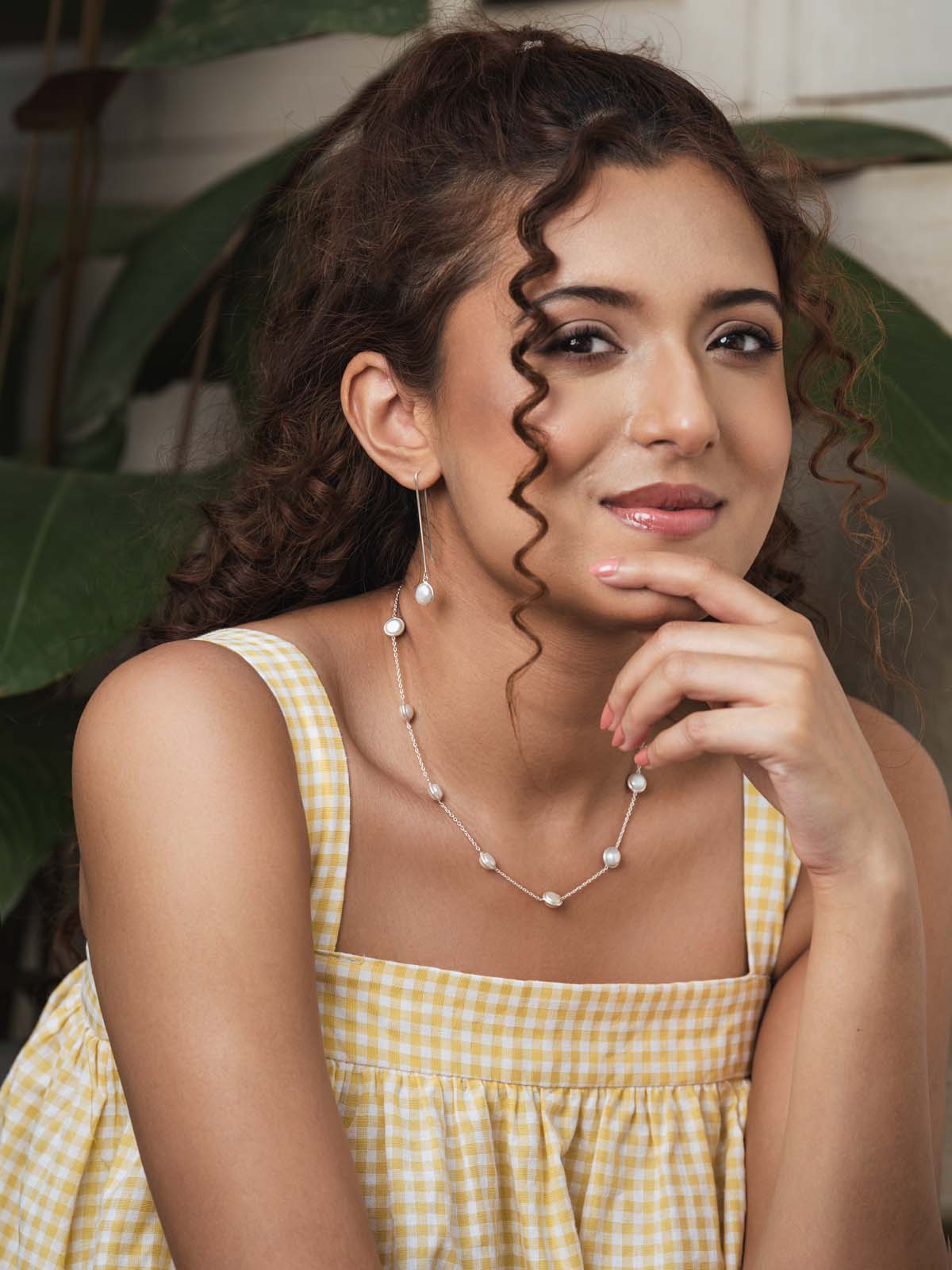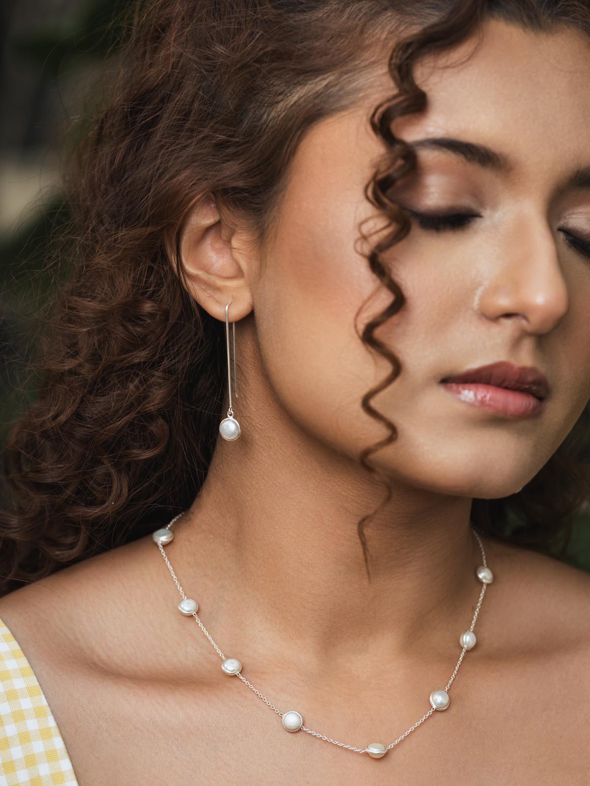 Elevate your elegance with our 92.5 sterling silver Pearl Necklace. This timeless piece combines lustrous pearls with sterling silver for a classic and sophisticated look. Perfect for any occasion , its a must-have addition to your jewelry collection. Want to strike a match? Then these perfectly elegant earrings will steal your heart. Wear them together or as separates they are fit to become a family heirloom much like the humble string of pearls.