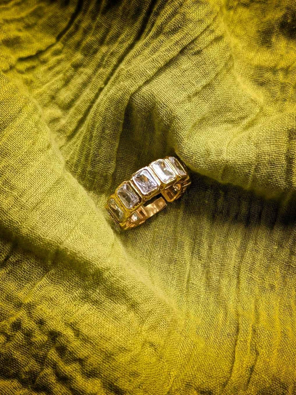 Harper Crystal Adjustable Silver Ring | 18kt Gold Plated Band