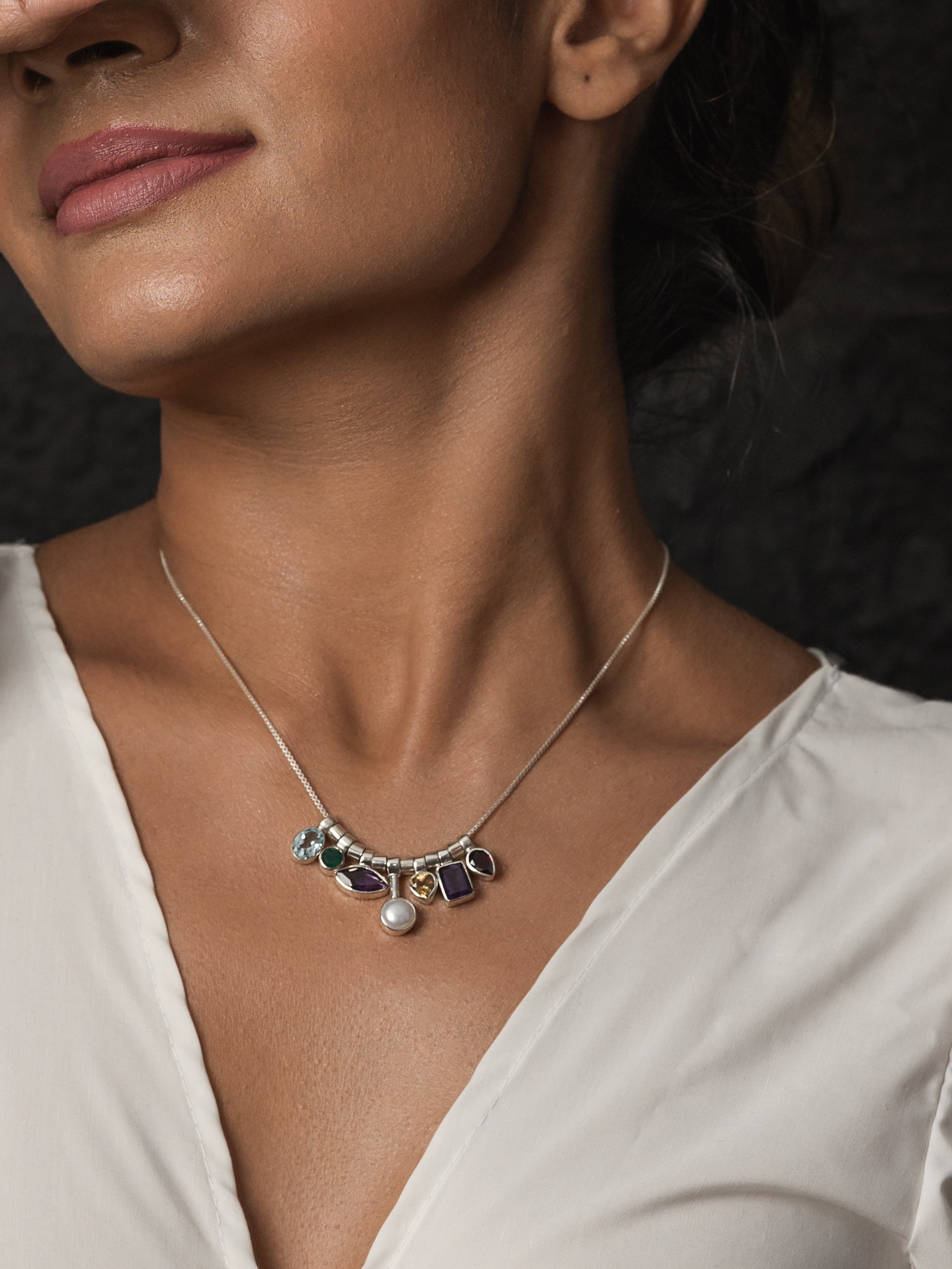 Materials Used - 92.5 silver, Amethyst,Citrine,Garnet,Blue Topaz, Green Onyx, Pearl