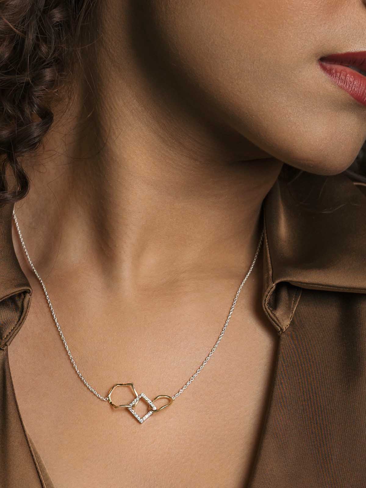 Embodying the complex beauty of the rings of Saturn, this necklace is a combination of abstract shapes( multihued with silver and gold plating) that make up the building blocks of the galaxy as we know it. Style it with a work ensemble to elevate the look instantly!