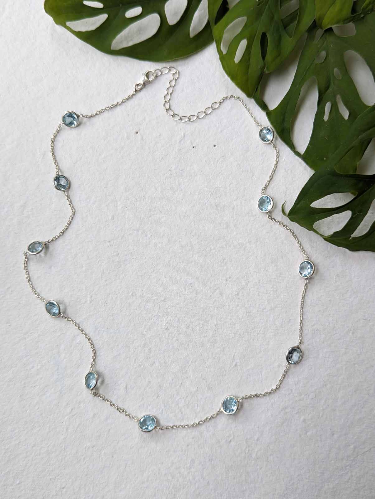 Introducing our Blue Topaz necklace - a mesmerizing fusion of the tranquil blue topaz gemstone with the timeless elegance of sterling silver.